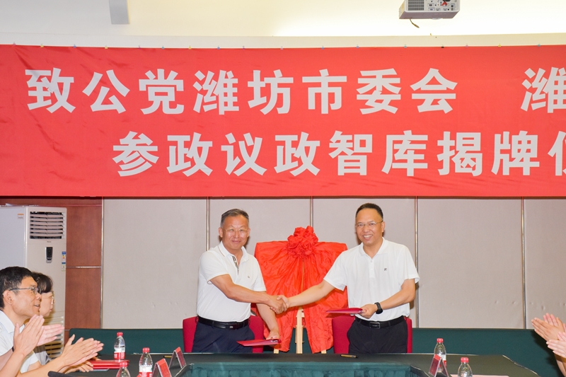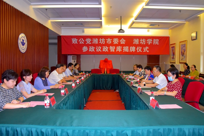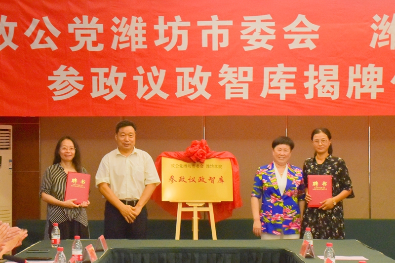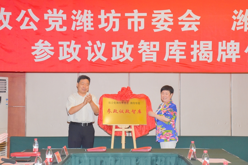6月30日上午,潍坊学院与致公党潍坊市委会联合举行“参政议政智库”成立仪式。市政协副主席、致公党潍坊市委会主委任春娥,潍坊学院党委副书记、统战部部长王清明共同为智库揭牌。活动中,双方签署共建“参政议政智库”协议书,为首批聘任的智库专家颁发了聘书。